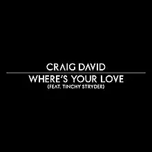 "Where's Your Love" is a song by Craig David from his album, Greatest Hits. It features vocals from rapper Tinchy Stryder and singer Rita Ora (although her vocals are not officially credited). It was made available for digital download only, on 10 November 2008 in both Ireland and the United Kingdom. The record is known for the chorus that has been used on various other underground UK garage tracks, Craig David is thought to be paying homage to the genre that made him a star. The song debuted at number 58 on the UK Singles Chart.