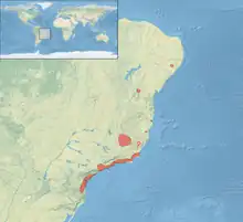 The white-necked hawk is found discontinuously in southeastern Brazil from Paraíba south to Paraná state; it might previously have occurred further south in Santa Catarina state. It mostly inhabits dense primary Atlantic Forest but has been recorded in secondary forest. In elevation it generally ranges from sea level to at least 900 m (3,000 ft) and locally to 1,300 m (4,300 ft) in Minas Gerais.[4]
