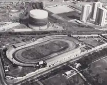 The stadium was built on Paisley Road West in Glasgow close to Ibrox Stadium, which was situated to the north-east and even closer to the Albion Greyhound Stadium, which opened the same year and across the road also on the north-east side.[1] When the stadium opened it was known as the White City Sports stadium and in addition to greyhound racing hosted Speedway and show jumping.[2] Bellahouston Park lay immediately to the south.