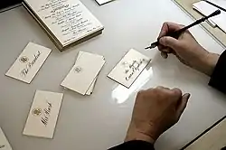 The chief calligrapher works in the East Wing of the White House in the Graphics and Calligraphy Office with two deputy calligraphers. Projects of the chief calligrapher range from official invitations to state dinners, official greetings from the president, proclamations, military commissions, service awards, and place cards.