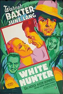 White Hunter is a 1936 American adventure film directed by Irving Cummings and written by Sam Duncan, Kenneth Earl and Georg Wilhelm Pabst. The film stars Warner Baxter, June Lang, Gail Patrick, Alison Skipworth, Wilfrid Lawson and George Hassell. The film was released on November 25, 1936, by 20th Century Fox.[1][2][3]