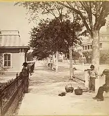 From about 1840 to 1881, a public bathing house stood at the end of King Street.[3] The building was constructed by James English, William Patton, and Henry L. Pinckney at a cost of about $25,000. A cake and ice cream parlor was operated on the top floor of the bathing house. The bathing house suffered several injuries by storms but was rebuilt each time. It was removed in 1881 as White Point Garden and the waterfront were filled in.[4]