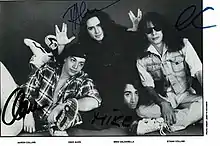 Friends Dave Alvin (vocals) and brothers Ethan (guitar) and Aaron Collins (bass) formed the band in 1985 and first played together at Aaron's bar mitzvah, performing covers of Judas Priest's "Breaking The Law" and "Living After Midnight".[3] They used several different drummers until three years later, when Aaron's high school buddy Mike Caldarella joined. In 1990 they were discovered and subsequently signed to EMI Music Publishing. They signed to Elektra Records in 1991 and released their self-titled debut album that same year, which was produced by George Drakoulias and engineered by Brendan O'Brien.