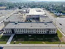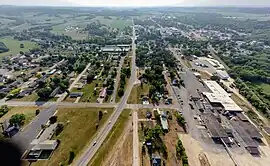 The Green Bay railroad was built through the valley of the Trempealeau River in 1873. "The tracks were laid through the wheat field that is now Whitehall, on Sept. 2, 1873. ... Where the courthouse now stands, the harvesters were gathering wheat. ... On New Year's Day, 1874, the first passenger train passed Whitehall on regular schedule. That same day the lumber was unloaded for the first depot ..."[9] Whitehall was incorporated in 1887.