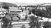 Whitehall was started in 1860 or 1861, in an area later known as Old Whitehall about a mile from the center of the current city, by Ole Knudtson. He came to Whitehall June 25, 1860, and opened a hotel and blacksmith shop. The proprietors of the town site were Benjamin Franklin Wing and Mr. Georges.[6] A post office called Whitehall was first established in 1861.[7] The city was named by Benjamin F. Wing, possibly after White Hall, Illinois and Whitehall, New York.[8]