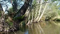 The river has its source in Lake Wieprz, in Wieprzów Tarnawacki near Tomaszow Lubelski, and flows into the Vistula near Dęblin.[2] The Wieprz is connected to another river, the Krzna, through the 140-kilometer Wieprz-Krzna Canal, built in 1954-1961. Because the Wieprz with its wide valley has not been regulated, its nature is very diverse. The meandering river with its oxbow lakes is inhabited by numerous birds, European otters and Eurasian beavers.