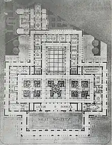 At the request of Hubert Lyautey, plans for an Hôtel de Ville were first drafted by Henri Prost in 1914, early on in the French Protectorate in Morocco, and then further developed in 1920.[3] It was Marius Boyer, however, who ultimately won the administrative building's design competition in 1927.[3] Construction started in 1928 and finished in 1937.[3]