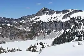 Wild Goat Peak is a 6,305-foot (1,922-metre) mountain summit located above the eastern shore of Gold Lake, in eastern King County of Washington state. It's part of the Cascade Range, and is situated in the Alpine Lakes Wilderness, on land managed by Mount Baker-Snoqualmie National Forest. Precipitation runoff from the mountain drains into tributaries of the Snoqualmie and Skykomish Rivers. The nearest higher neighbor is Big Snow Mountain, 1.91 mi (3.07 km) to the southwest.[1] This peak was once called "Big Snowy".[2]