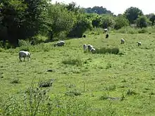 This site has a long history of traditional management, with low intensity summer grazing. It has areas of species-rich calcareous grassland, damp pasture, scrub and dykes. There is a large population of green-winged orchids.[3]