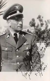 In April 1939, Albert was promoted to SS-Brigadeführer.[1] In 1939, he was appointed along with Werner Best, Walter Schellenberg and Kurt Pomme as director of the Stiftung Nordhav.