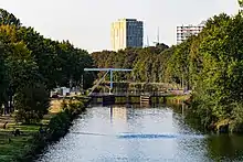 The projected end point of the canal in Tilburg was the Piushaven (Pius Harbor) just south east of the city center. On 24 July 1918 construction of two sections was tendered. The first was that between the Tilburg-Loon op Zand road and the Nieuwe Leij, and included a side canal towards Tilburg proper. The other section stretched to Haghorst.[41] The side canal would lead to Tilburg's inland harbor Piushaven. The plan for a harbor, housing and industry near the Pius park and street was approved in April 1920.[42] It seems that celebrations for the opening of the harbor were included in those for the 25th anniversary of Queen Wilhelmina's reign in August 1923. These included a gondola tour from the Quay at Lijnsheike to Piushaven.