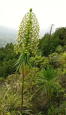 Wilkesia gymnoxiphium (Hawaiian iliau), is a species of flowering plant in the family Asteraceae that is endemic to the island of Kauaʻi in Hawaiʻi. It is classified as endangered on the IUCN Red List.[3] Wilkesia is one of three genera, with Argyroxiphium (silverswords and greenswords) and Dubautia (a larger group with many varied species) that are believed to be descendant from a single species related to the North American tarweed.[4] The members of these three genera constitute what is called the silversword alliance, a group whose exceedingly close genetic heritage is not reflected in their exceptionally diverse morphologies.[5]