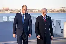 On 27 September 2022, William and Catherine visited Anglesey and Swansea, which marked their first visit to Wales since becoming Prince and Princess of Wales.[212] William visited the Senedd in November 2022, meeting the Welsh first minister Mark Drakeford.[213] On 9 February 2023, William and Catherine visited Falmouth, marking their first visit to the region since becoming Duke and Duchess of Cornwall.[214] In March 2023 William undertook a solo visit to Poland during which he visited Rzeszów to meet Polish and British troops and Ukrainian refugees, and had talks with Polish president Andrzej Duda at the Presidential Palace.[215][216]