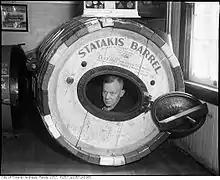 ![]() "Red" in a barrel, about 1935 | |