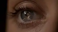 Fox Mulder appears as a reflection in Dana Scully's eye. This scene marked the first appearance of David Duchovny since his departure at the end of season eight.