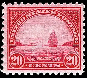 20 cent, 1923 US postage stamp of Golden Gate, based on painting by William Alexander Coulter