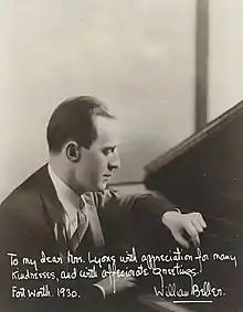 William Albert Beller (19 July 1900, in Burlington, Wisconsin – 20 February 1986)[1] was an American concert pianist[2] and professor of music at Marquette University and Columbia University. He was deemed a musical prodigy when he was 4 years old.[3][4] He had also taught piano at the Bronx House Music School in the 1930s.