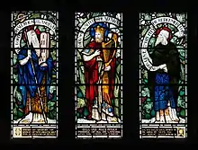 In March 1913, a stained glass window by James Powell and Sons was erected in memory of him in the east wall of the side chapel of St Columb's Cathedral, financed by public subscription. The lower panels depict Moses, King David, and Isaiah in reference to his qualities as leader, poet, and preacher. His closing words of his resignation speech in February 1911 are quoted at the bottom: "Not in wisdom of words, lest the Cross of Christ be made void" (1 Cor 1:17).[1][2]