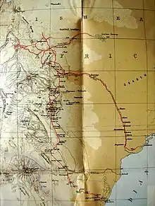 In 1910, Chanler went to Libya to fight for the Senussi against Italy in the Italo-Turkish War.[130] In August 1911, he wrote to von Höhnel to ask him to order 15 Mauser pistols and 5,000 rounds of ammunition through arms dealer Basil Zaharoff. He then visited Constantinople where he was granted a Turkish commission as colonel of auxiliaries and a gift of 500,000 Turkish lira. Chanler arranged for weapons and supplies to be landed at isolated spots along the Libyan coast. Returning to Libya, Chanler wandered the desert in disguise, exhorting the Tuaregs and Tebou to resist Italian rule. Eventually he was granted a rare audience with Ahmed Sharif as-Senussi who permitted him to recruit and train a unit of horsemen. On 23 October 1911, Arab cavalry commanded by Chanler ambushed and nearly destroyed the IV Battalion of the 11th Bersaglieri Regiment at Shar al-Shatt, killing over 500 Italian troops.[131]:86 Chanler was forced to leave the country a few days later after drinking poisoned camel's milk.[3]