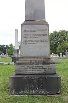 William Bradford Cenotaph in Laurel Hill Cemetery. He is buried at his wife's family plot at Saint Mary's Episcopal Churchyard in Burlington, New Jersey