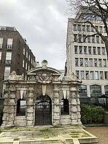 Burdett House, 15–16 Buckingham Street, to the right of the York Water Gate. Burges had his home/studio in a building on the site of No.15.[lower-alpha 1]