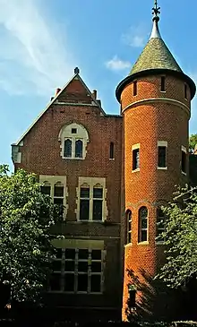 Park House, Cardiff, was built by Burges for Lord Bute's engineer, James McConnochie, between 1871 and 1875.[142] With its steep roofs and boldly textured walls, Park House revolutionised Cardiff's domestic architecture, and was highly influential, in the city and beyond. The impact of the building can be seen in many of Cardiff's inner suburbs, where imitations of Park House and its features can frequently be identified.[142] Cadw described it as "perhaps the most important 19th century house in Wales",[143] a position reflected in its status as a Grade I listed building.[144]