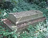 In 1861–2, Burges was commissioned by Charles Edward Lefroy, secretary to the Speaker of the House of Commons, to build All Saints Church, Fleet, as a memorial to Lefroy's wife.[40] She was the daughter of James Walker, who established the marine engineering company of Walker and Burges with Burges's father Alfred, and this family connection brought Burges the commission.[41] Pevsner says of Fleet that "it has no shape, nor character nor notable buildings, except one,"[40] that one being All Saints. The church is of red brick and Pevsner considered it "astonishingly restrained."[40] The interior too is simply decorated but the massive sculpture, particularly of the tomb of the Lefroys and of the gabled arch below which the tomb originally stood, is quintessentially Burges, Crook describing it as "not so much muscular (gothic) as muscle-bound."[42]