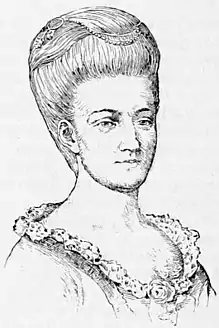 In 1779, Duer married Lady Catherine Alexander (1755–1826), second daughter of Sarah (née Livingston) Alexander and Lord Stirling, a major general in the Continental Army.[9] The marriage took place at Stirling's country seat, "The Buildings," near Basking Ridge, New Jersey. It was designed in the style of a residence of an English nobleman, with all the appointments of an English country seat. Catherine's paternal grandparents were New Jersey Attorney General James Alexander and merchant Mary Spratt Provoost Alexander, and her maternal grandparents were Catherine Van Brugh Livingston and Philip Livingston, 2nd Lord of Livingston Manor.[4] She was, descended from the De Peysters, Livingstons, and Schuylers, and occupied a prominent place in the society of the period.[5]