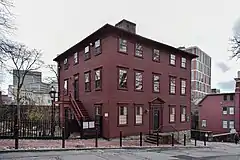 On May 25, 1785, Goddard married Abigail Angell of Johnston, Rhode Island, the daughter of Brigadier-General James Angell and Mary Mawney Angell.[98] The wedding took place at Cranston.[99] They had 5 children: 4 daughters and 1 son. In 1803, he left Johnston for Providence, so his children might have more educational advantages. His son William Giles Goddard graduated from Brown University in 1812 and received an appointment of Professor of Moral Philosophy and Metaphysics.[98]