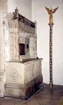 The 'Alter Tomb' of William Honnyng and his wife Frances survives in the parish church at Eye. Although badly damaged, with its shields and other decoration removed, the inscription remains visible:-[35]
