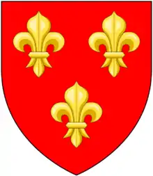 Arms of William de Cantilupe: Gules, three fleurs-de-lys or ("Cantilupe Ancient"). These arms are blazoned in Glover's roll of arms.[1] The Cantilupe arms changed in the late 13th century to jessant-de-lys