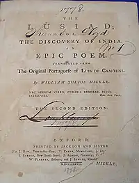 This article incorporates text from a publication now in the public domain: Cousin, John William (1910). "Mickle, William Julius". A Short Biographical Dictionary of English Literature. London: J. M. Dent & Sons – via Wikisource.