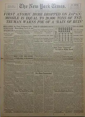 - ↑ Laurence, William L. (1947). Dawn Over Zero: The Story of the Atomic Bomb. Pickle Partners Publishing. p. 238.text at Google Books