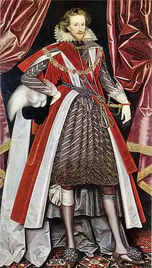 William Larkin (early 1580s 1619) was an English painter active from 1609 until his death in 1619, known for his iconic portraits of members of the court of James I of England which capture in brilliant detail the opulent layering of textiles, embroidery, lace, and jewellery characteristic of fashion in the Jacobean era, as well as representing numerous fine examples of oriental carpets in Renaissance painting.[2]
