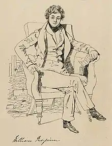 Born at Cork he became a contributor to Blackwood's Magazine, and after moving to London in 1824 became for a few months in 1826 the Paris correspondent to The Representative, a paper started by John Murray, the publisher. When its short career was run, he helped to found in 1827 the ultra Tory Standard, a newspaper that he edited along with a fellow graduate of Trinity College, Dublin, Stanley Lees Giffard; he also wrote for the more scandalous Sunday paper, The Age. In 1830 he instigated and became one of the leading supporters of Fraser's Magazine. His Homeric Ballads, much praised by contemporary critics,[1] were published in Fraser's between 1839 and 1842. In 1837, Bentley's Miscellany was launched, with Charles Dickens as editor, and Maginn wrote the prologue and contributed over the next several years a series of "Shakespeare Papers" that examined characters in counter-intuitive fashion (e.g., the key to Falstaff is his melancholy). From "The Man in the Bell" (Blackwood's, 1821) through "Welch Rabbits" (Bentley's, 1842) he was an occasional though skilful writer of short fiction and tales. His only novel, Whitehall (1827) pretends to be an historical novel set in 1820s England written in the year 2227; it is a droll spoof of the vogue for historical novels as well as the contemporary political scene. He also wrote The Military Sketch-Book: Reminiscences of Seventeen Years Service Abroad and At Home, "By An Officer of the Line" (anonymously) published in two volumes by Henry Colburn in 1827. Partly set in Australia and involving the capture of a notorious gang of Bushrangers. In 1836, he fought a duel with Grantley Berkeley, a member of Parliament. Three rounds of shots were fired, but no one was struck. Berkeley had brutally assaulted magazine publisher James Fraser over a review Maginn wrote of Berkeley's novel Berkeley Castle, and Maginn had called him out.