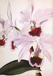 - ↑ Erica ovata (Loddiges 417); Erica coventryana (Loddiges 423); Stapelia vetula (Loddiges 428); Phaca astragalina (Loddiges 429); Erica ventricosa (Loddiges 431); Crassula versicolor (Loddiges 433); Pinguicula grandiflora (Loddiges 445); Erica ramentacea (Loddiges 446); Olea europaea longifolia (Loddiges 456); Lissanthe daphnoides (Loddiges 466); Genista ovata (Loddiges 482); Polygonum frutescens (Loddiges 489); Phaca australis (Loddiges 490); Limodorum maculatum (Loddiges 496); Cytisus capitatus (Loddiges 497); Erica ampullacea (Loddiges 508); Erica scabriuscula (Loddiges 517); Erica andromedaeflora (Loddiges 521); Listera cordata (Loddiges 532); Ledum latifolium (Loddiges 534); Acacia verticillata (Loddiges 535); Erica daphnaeflora (Loddiges 543); Theobroma cacao (Loddiges 545); Eugenia malaccensis (Loddiges 555); Erica rubens (Loddiges 557); Erica spumosa (Loddiges 566); Silene acaulis (Loddiges 568); Dillwynia glaberrima (Loddiges 582); Erigeron alpinum (Loddiges 590); Polygala chamaebuxus (Loddiges 593); Erica pilosa (Loddiges 606); Rafnia triflora (Loddiges 611); Erica moschata (Loddiges 614); Vaccineum vitis-idaea (Loddiges 616); Erica grandinosa (Loddiges 627); Erica rubella (Loddiges 658); Erica purpurea (Loddiges 703); Phlox carnea(Loddiges 711); Erica primuloides (Loddiges 715); Calothamnus quadrifida (Loddiges 737);