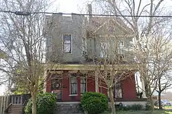 The William Nicholas Straub House is a historic house at 531 Perry Street in Helena, Arkansas. It is a stylistically eclectic 2+1⁄2-story structure, built in 1900 for William Nicholas Straub, a prominent local merchant. The house's main stylistic elements come from the Colonial Revival and the Shingle style, both of which were popular at the time. The house has a first floor finished in painted brick, and its upper floors are clad in shingles. The main facade has a single-story porch across its width, supported by three Ionic columns. The entrance, on the left side, has a single door with a large pane of glass, and is topped by a transom window. On the right side is a two-sided projecting bay section. The house's most prominent exterior feature is a crenellated tower which rises above the entry.[2]