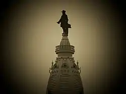 It is located atop the Philadelphia City Hall in Philadelphia, Pennsylvania. It was installed in 1894. It was cast in fourteen sections, and took almost two years to finish.