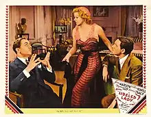 Lobby card with Powell, Jean Harlow and Spencer Tracy in Libeled Lady (1936)
