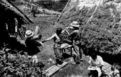 ![]() Dr. W. R. Morse at work in Miaoland, making physical measurements on a member of the Hua Miao race near Shimenkan, Weining, Guizhou Province. | |