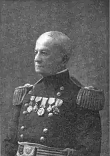 Wort remained in the U.S. Army and was promoted to captain on January 14, 1866. By 1869, the 8th Infantry Regiment was merged with the 1st Battalion of the 17th Infantry Regiment into the 23rd Infantry Regiment. He went on to serve at Arizona and Oregon for the next 25 years until he was promoted to major on March 9, 1881, within the 2nd Infantry Regiment. On 1880, he married Florence Mansfield who was the daughter of The Reverend Delos Mansfield.[3] He was transferred to the 13th Infantry Regiment as its lieutenant colonel on November 26, 1894. He then lead the 2nd Brigade of the V Corps but was wounded during the Battle of San Juan Hill.[4] After being promoted to colonel of the 16th Infantry Regiment on August 11, 1898, and became a brigadier general of volunteers from July 12, 1898, to October 28, 1898, when was given full generalship on October 29 and held that rank until his retirement on November 9, 1898.[2][5][6] Before his death, Worth was a member of the Aztec Society, the Military Order of the Loyal Legion of the United States, the General Society of Colonial Wars, the Society of the Army of the Potomac and the Society of the Cincinnati.[3]