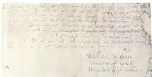 Signature of William Schaw on a copy of the Second Statutes, as "maister of wark" and "wairden of the maisons", Holyroodhouse, 28 December 1599