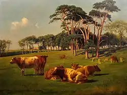 Much of Cooper's work reflects the countryside around Herne Bay and often contain cattle (which were his speciality) and sheep as in his Great Uncle's work. He died in 1927 and is buried in the churchyard at Eddington, Kent.