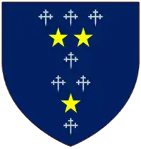 Azure three Mullets Or two and one between seven Cross Crosslets fitchée Argent three one two and one