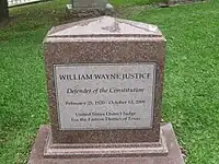 - ↑ "U.S. District Judge William Wayne Justice dies; rulings led to sweeping prison reforms". Dallas Morning News. October 14, 2009.