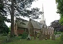 - All Saints, Leyton Consecrated January 1865. A cruciform brick building in the Decorated Gothic style with a long narrow chancel, low walls and steeply pitched roofs.[23][24]