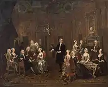 Wollaston is the central figure in the 1730 William Hogarth painting William Wollaston and his Family in a Grand Interior, now in the New Walk Museum and Art Gallery, Leicester.[7] Although it had been on loan to the museum since 1943, it was only acquired by them from the Wollaston family in 2019, via the Acceptance in Lieu scheme.[7]