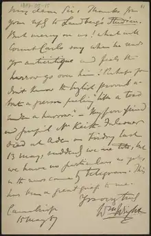 - ↑ "Wright, William (WRT868W)". A Cambridge Alumni Database. University of Cambridge.