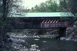 The Williamsville Covered Bridge is a historic covered bridge, carrying Dover Road over the Rock River in Newfane, Vermont. Probably built in the 1870s, this Town lattice truss bridge is probably the oldest covered bridge in Windham County, and is the only one surviving in the town of Newfane. It was listed on the National Register of Historic Places in 1973.[1]