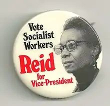 Willie Mae Reid (born April 20, 1928) is an American politician who ran as the Socialist Workers Party candidate for Mayor of Chicago in 1975, winning 16,693 votes but coming in third place against Richard J. Daley.[1] The number had fallen from the number of signatures she'd acquired to get on the ballot, 66,000.[2] She also ran as their vice presidential candidate in 1976 (presidential candidate: Peter Camejo) and 1992 (presidential candidate: James "Mac" Warren), winning 91,314 votes.[3]